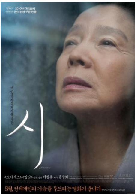 1) 정말 아름다운 영화입니다. 저는 왜 그것이 2010년에 오스카상 후보에도 오르지 않았는지 모르겠습니다. 저는 국제영화상과 윤정희 주연 여우주연상에 후보에 올랐어야 했습니다.